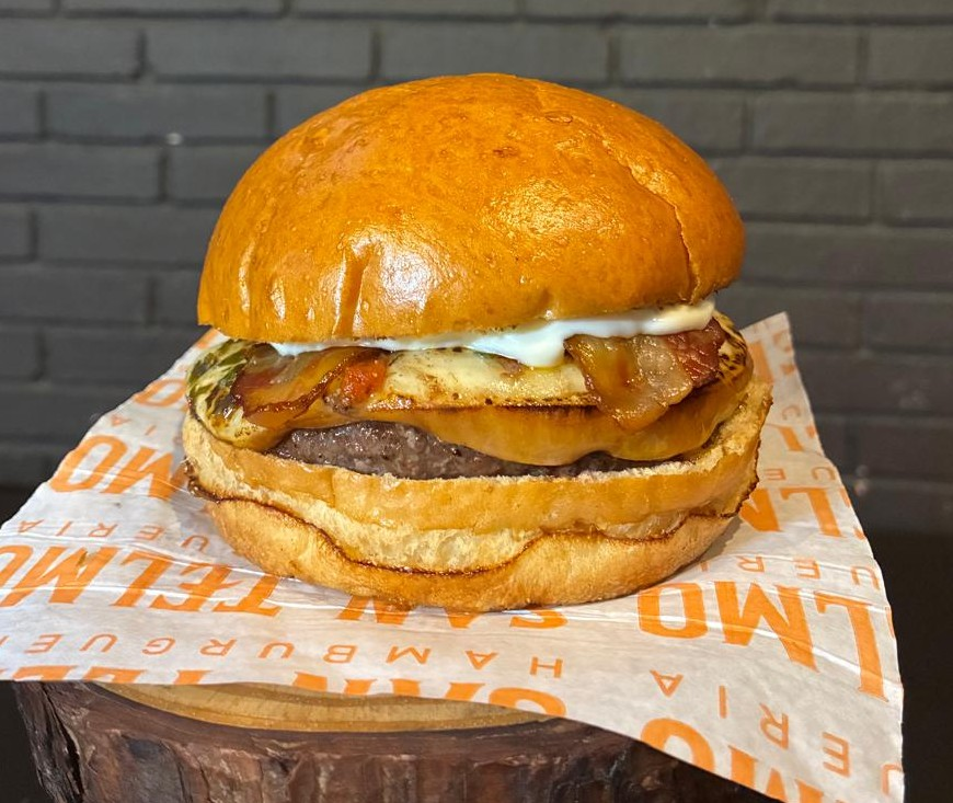 Pão brioche, hambúrguer de 160g feito na brasa, uma baita fatia de queijo provolone, molho chimmichurri da casa, bacon assado em tiras e maionese da casa.